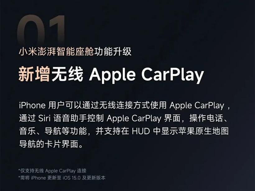 无线CarPlay功能的引入,更是让小米SU7成功吸引不少果粉的关注。