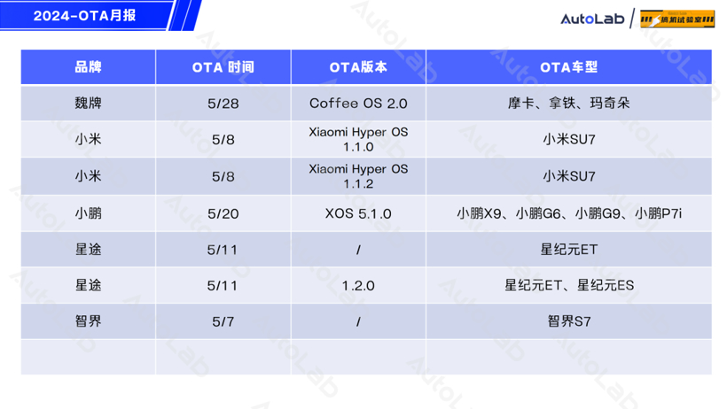 上个月我们才说过,4月作为“车展月”,车企并没有偷懒,大家更新速度和频率都非常高,而在刚刚过去的5月,收到OTA更新的车型总数与4月基本持平。