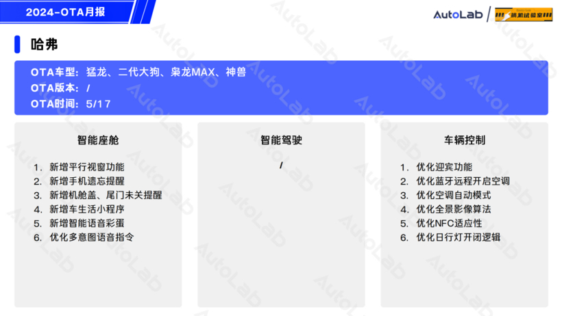 从OTA的车型数量来看,长城汽车在5月绝对算的上是遥遥领先。旗下哈弗以及魏牌两个品牌,共有9款车型收到了OTA更新。