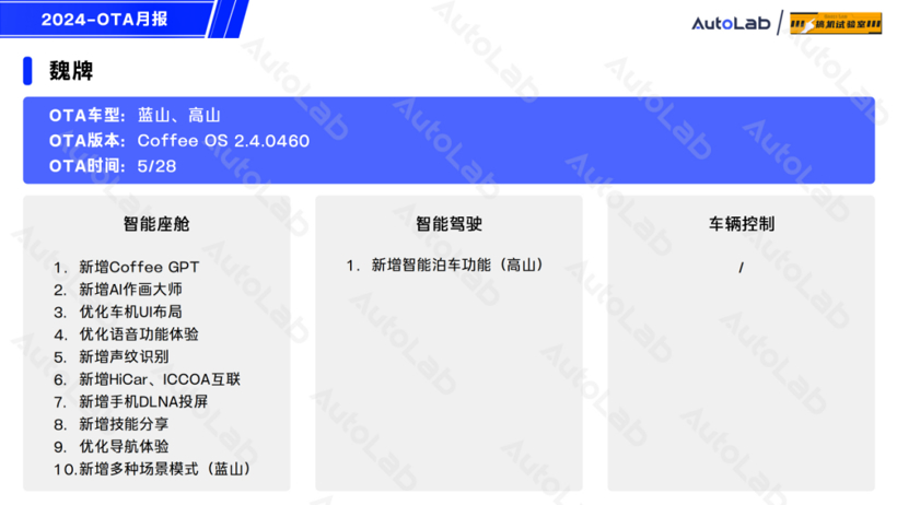 有意思的是,魏牌还引入了全新的AI大模型——Coffee GPT,刷新了不少人对于长城汽车在智能化方面的刻板印象。