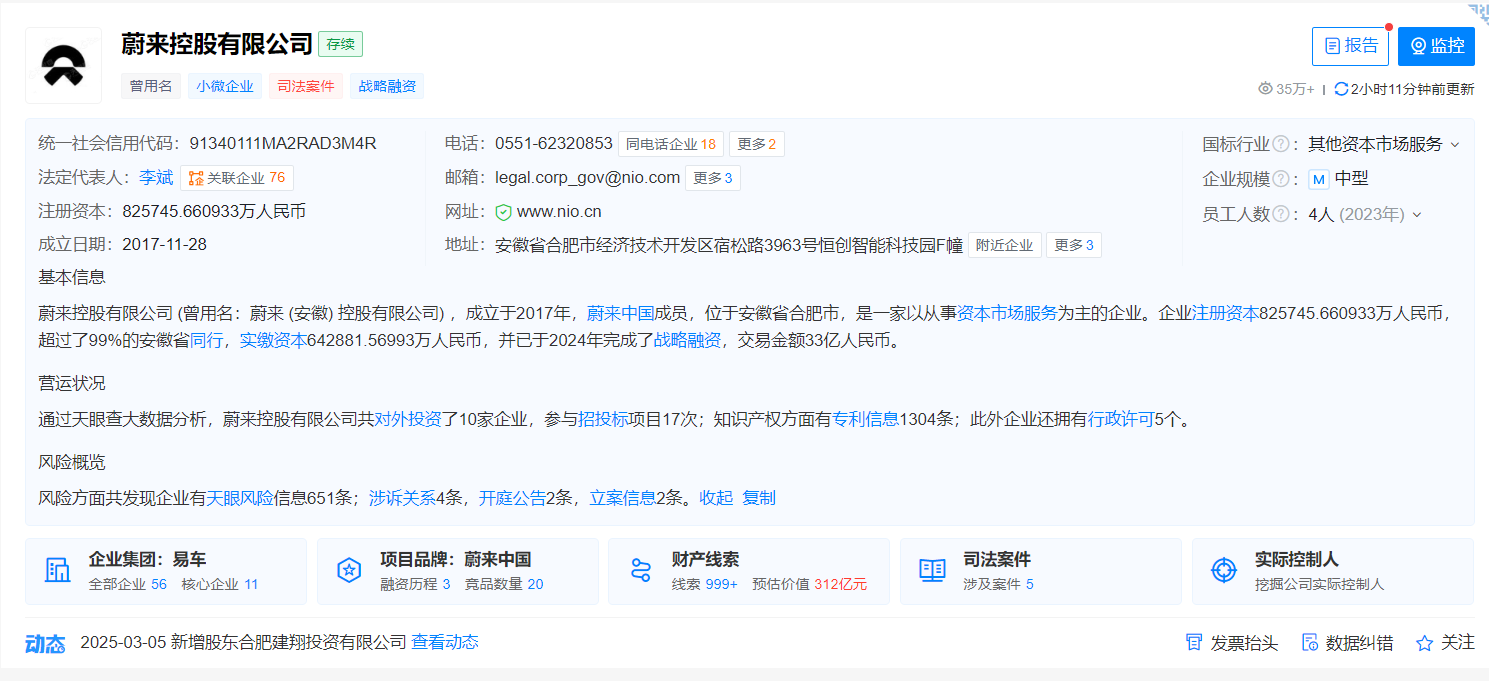 安徽国有资本再投4亿助力蔚来,累计融资规模突破千亿元安徽国有资本再投4亿助力蔚来,累计融资规模突破千亿元3月6日最新资讯,近期企查查平台披露了一项重要变动,蔚来控股有限公司...……2024-09-14