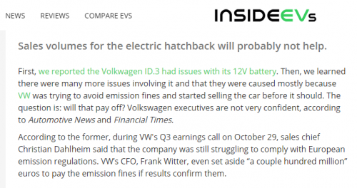 大众曾寄希望于纯电动汽车ID.3帮助公司满足碳排放的合规要求,然而软件故障导致该车型的上市时间被推迟。目前,ID.3的订单量略高于4万辆。
