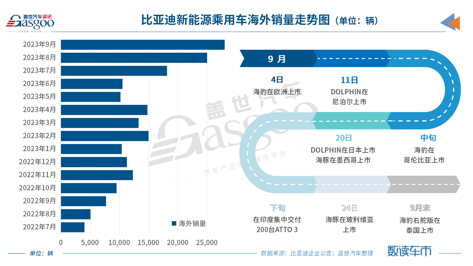 仅以比亚迪为例,自2021年5月比亚迪正式宣布“乘用车出海”计划,经过2年多的发展,目前比亚迪新能源乘用车的足迹已经遍布日本、德国、澳大利亚、巴西、阿联酋等55个国家及地区。截至2023年9月依然保持单月过万的销量,达28,039辆,再次突破2万辆,环比增长12.05%。